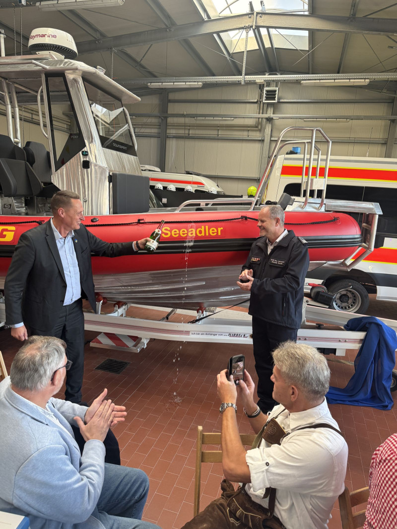 Landrat Holger Heymann betonte in seiner Ansprache die Bedeutung des neuen Boots für den Katastrophenschutz: „Der Seeadler wird im Ernstfall Leben retten, sei es bei der Versorgung unserer Inseln, bei Personensuchen im Watt oder bei Unterstützungseinsätzen mit Feuerwehr und Polizei.“ Gemeinsam mit Mitgliedern der DLRG Wittmund taufte er das Boot feierlich auf den traditionsreichen Namen „Seeadler“.